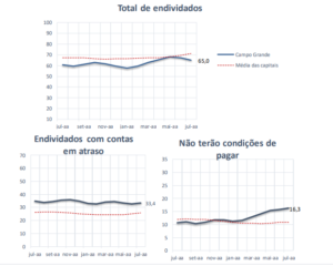 Para a economista do Instituto de Pesquisa e Desenvolvimento da Fecomércio MS (IPF MS), Regiane Dede de Oliveira, é preciso olhar para o número de famílias inadimplentes: já são 33,4% das famílias inadimplentes ante 32,7%, em junho.