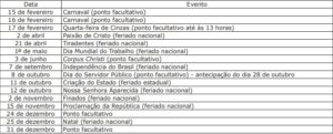 Feriados instituídos pelos municípios devem ser observados pelas instituições do Poder Executivo Estadual nas respectivas localidades, como aniversário da cidade.