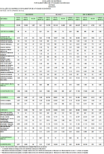 Sete, dos oito setores da economia, tiveram desempenho positivo no Estado. Os Serviços foram os principais responsáveis pelo resultado, com abertura de 752 postos. Também tiveram saldos positivos Indústria de Transformação, Construção Civil, Agropecuária, Serviços Industriais de Utilidade Pública, Extrativa Mineral e Administração Pública (confira tabela abaixo).