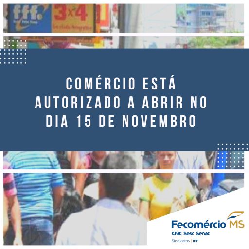 O comércio de Campo Grande está autorizado a abrir no dia 15 de novembro, feriado nacional da Proclamação da República, mediante o cumprimento de algumas normas estabelecidas em Convenção Coletiva de Trabalho, firmada entre o Sindivarejo Campo Grande, afiliado da Fecomércio-MS, e o Sindicato dos Empregados no Comércio. Os empresários que irão abrir seus empreendimentos […]