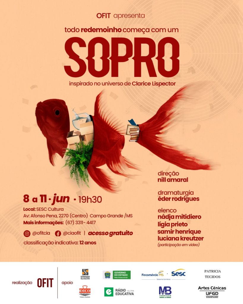 Nesta semana o Sesc Cultura, integrante do Sistema Comércio, vai receber o espetáculo “Todo Redemoinho começa com um sopro” em três sessões, a partir de hoje, 09, amanhã (10) e sábado (11), sempre a partir das 19h30. Com classificação indicativa de 12 anos, a atividade tem participação gratuita, sendo que os ingressos serão distribuídos com uma hora de […]