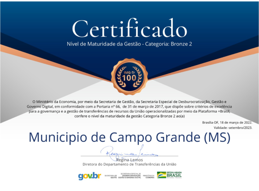 O Município de Campo Grande foi certificado pelo Ministério da Economia, como Modelo de Excelência em Gestão. É a primeira capital do país a receber a certificação do Governo Federal por meio da Secretaria Especial de Desburocratização, Gestão e Governo Digital, que dispõe sobre os critérios de excelência para a governança e a gestão de […]