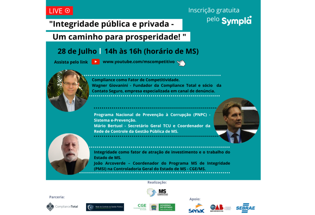 Nesta quarta-feira (28), às 14h (horário de MS), o MS Competitivo realiza a live “Integridade pública e privada – Um caminho para a prosperidade”, com a participação de especialistas no tema, que apresentarão informações sobre conceitos gerais para programas de integridade e compliance e como eles podem contribuir para a melhoria do ambiente de negócios […]