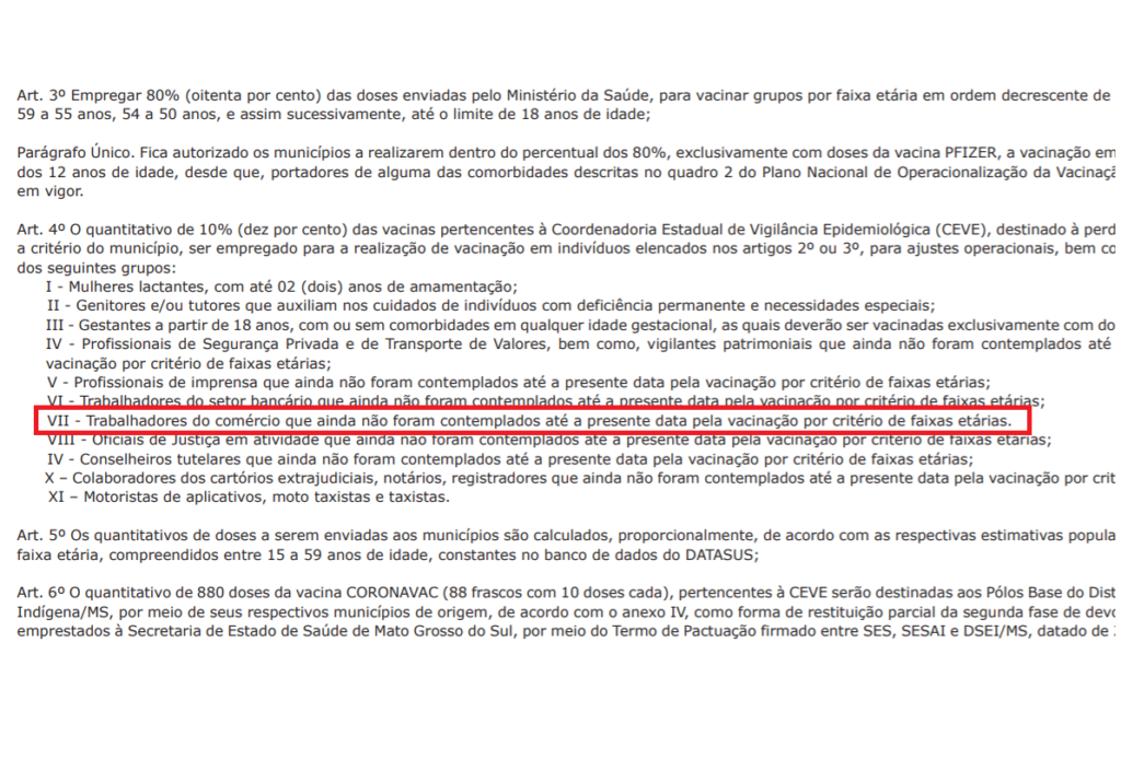 Resolução estabelece que trabalhadores do comércio de MS podem se vacinar contra Covid
