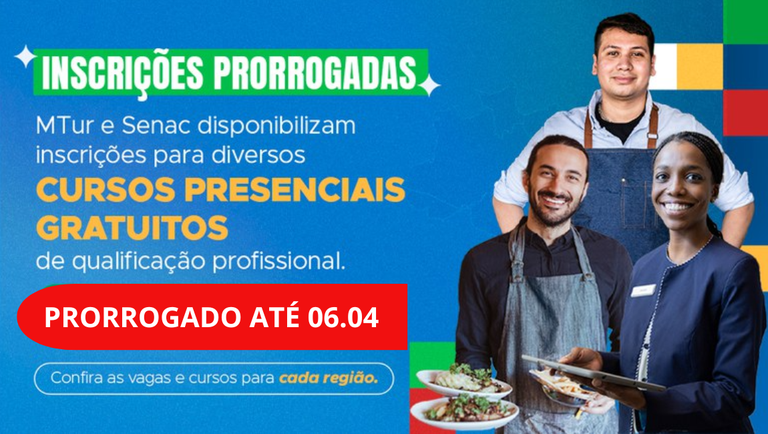 O Ministério do Turismo e o Serviço Nacional de Aprendizagem Comercial (Senac) prorrogaram as inscrições para as 1.630 vagas em cursos gratuitos de qualificação profissional. A oferta é para quem tem renda familiar per capita de até 2 salários mínimos mensais. Para participar, os candidatos devem preencher o formulário online até o dia 6 de […]