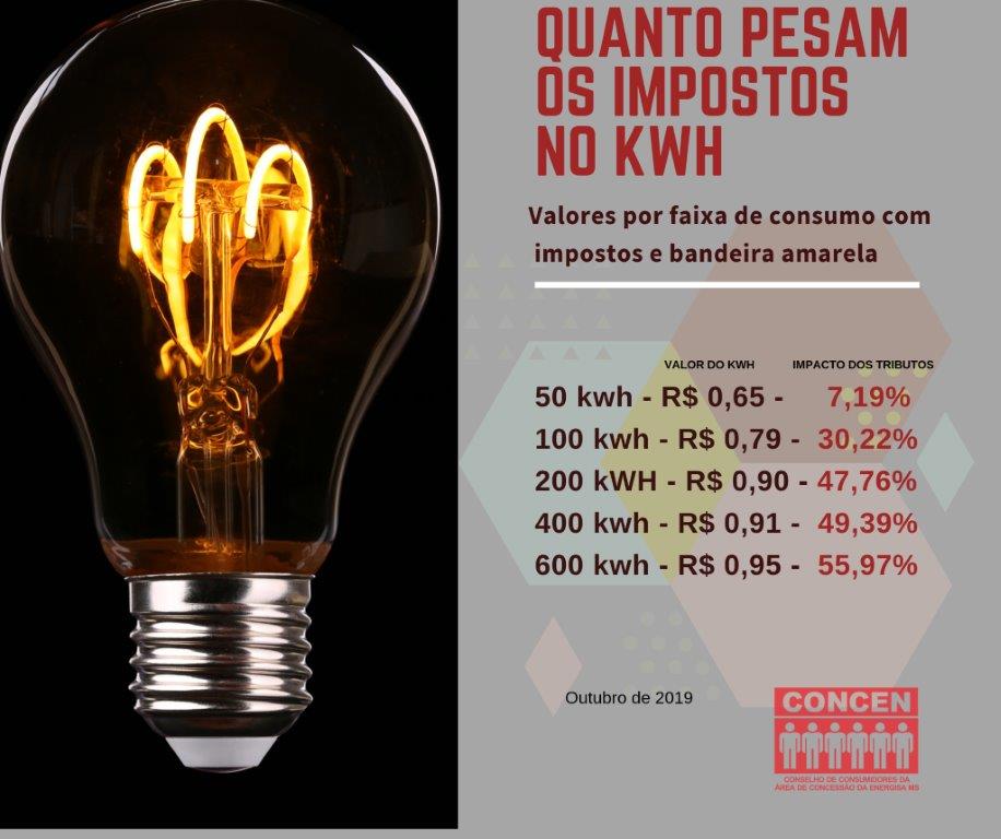 Impacto de impostos no valor do kwh vai de 7,19% a 55,97%