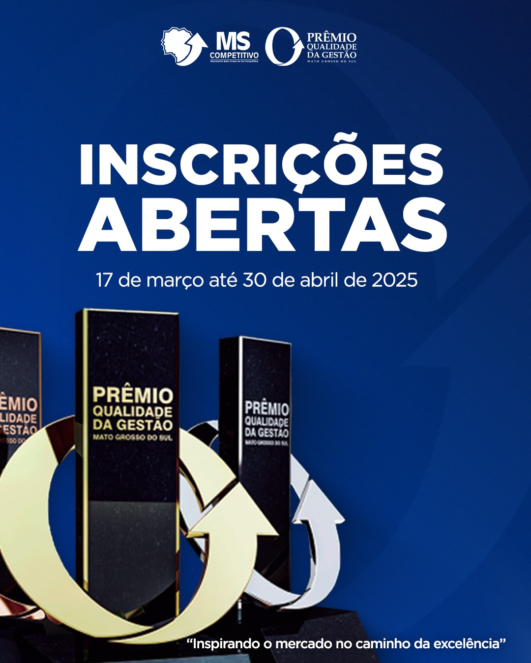 Estão abertas as inscrições para o Prêmio Qualidade da Gestão MS 2025 (PQG MS), um reconhecimento às organizações que buscam a melhoria contínua. As inscrições seguem até o dia 30 de abril. O Prêmio Qualidade da Gestão MS é uma vitrine para avaliar e aprimorar a gestão dos negócios, consolidando as marcas como referências em […]