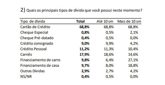 Segundo a pesquisa, os “muito endividados” aumentaram em relação ao mês anterior: 12,2 % em abril, perante os 11,9% de março. Entre os “pouco endividados” o aumento foi maior: 29,1% perante 26,9% em março. A economista do Instituto de Pesquisa e Desenvolvimento da Fecomércio MS, Regiane Dede de Oliveira, explica que o aumento ocorreu entre a população com mais de 10 salários mínimos. “A sondagem identifica que os aumentos mais significativos foram nos indicadores referentes a consignados, financiamento de carro e crédito pessoal. Apesar disso, o percentual de famílias que afirmam que não terão condições de pagar também teve um leve recuo, o que é favorável para o comércio e para a economia”. 3,6%”.